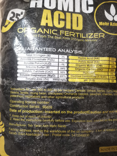 هیومیک اسید همراه با کود کامل و ریزمغذی درحه عالی۳۵۰٬۰۰۰ 20%